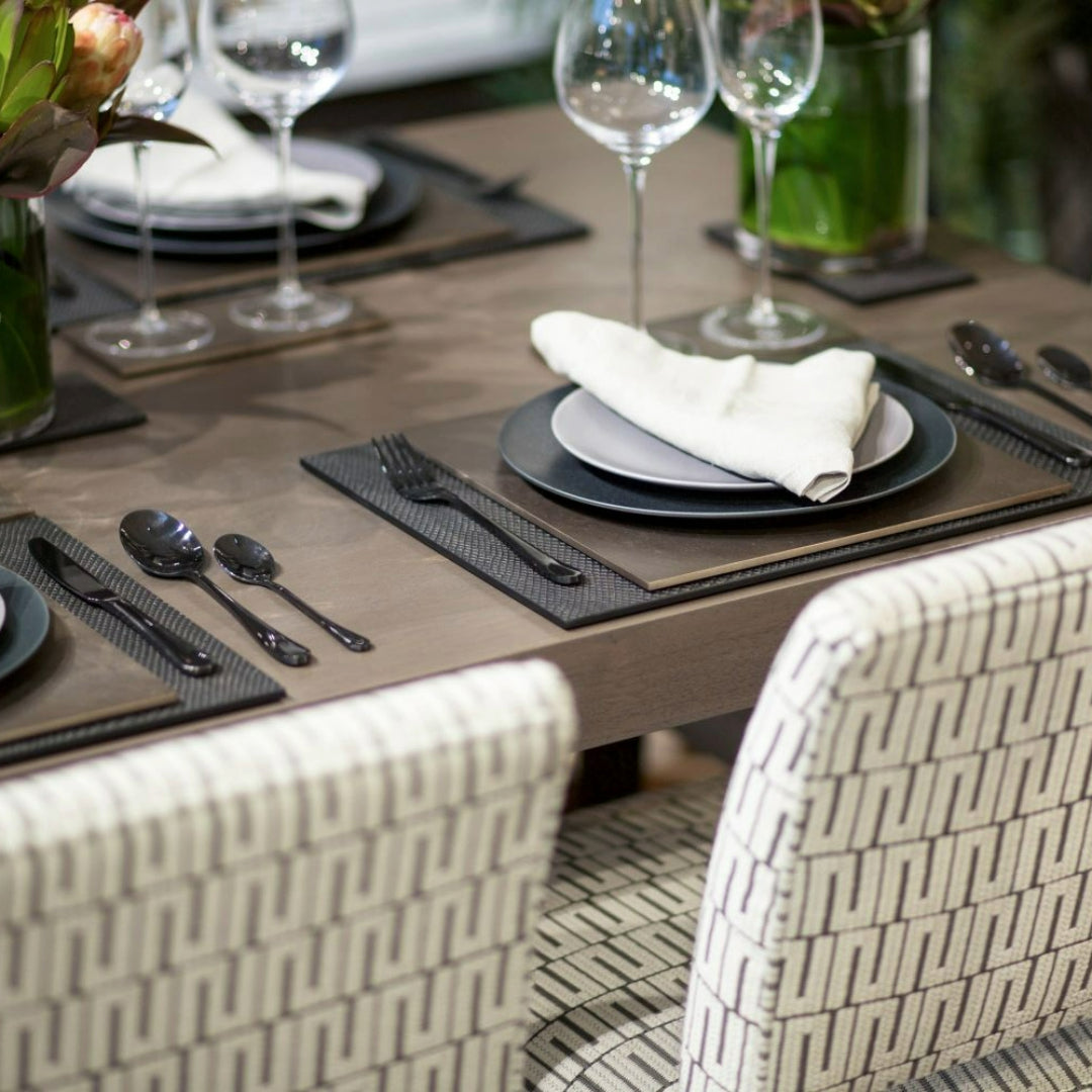 Our range is beautifully handcrafted from either Silver Leaf, Gold Leaf or Faux Skin finishes, which make an extravagant and luxurious addition to any dining table, bar or home. Comprising of fourteen different finishes available in a traditional high gloss or a beautiful matte finish lacquer, lustrous gold leaf or faux skin.